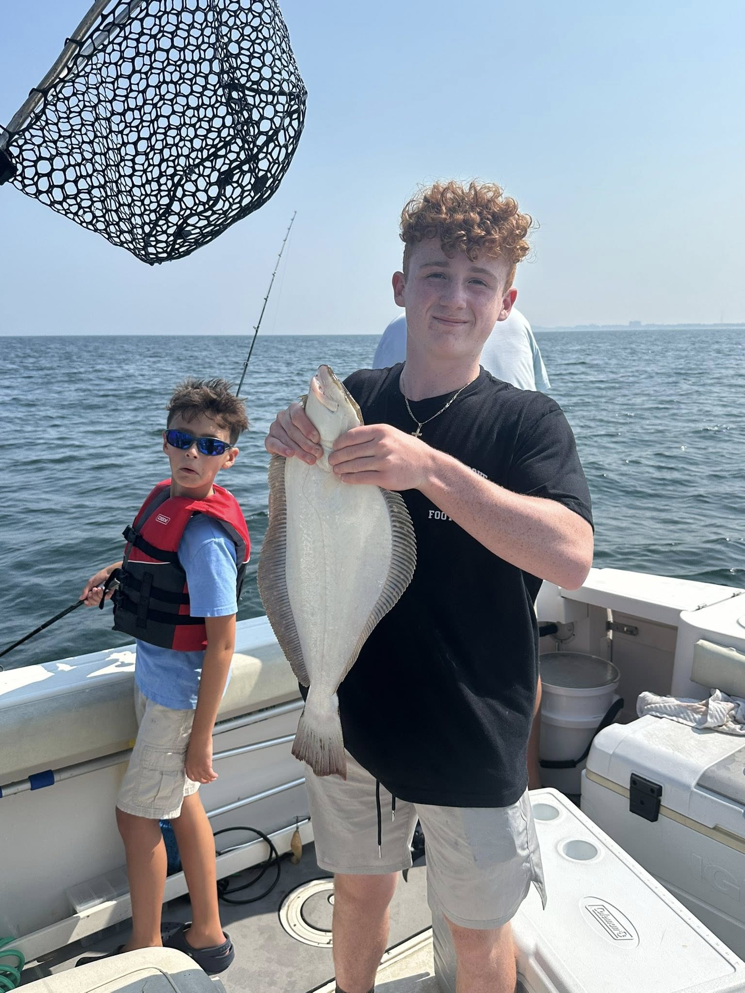 Today, we had Dave, Eddie, AJ, Charlie, and Connor out on the Fluke grounds, and it was non-stop action from start to finish! The crew stayed busy all day, catching tons of Fluke—most were shorts, but the action kept things exciting. We also had a solid mix of quality-sized Sea Bass in the catch.