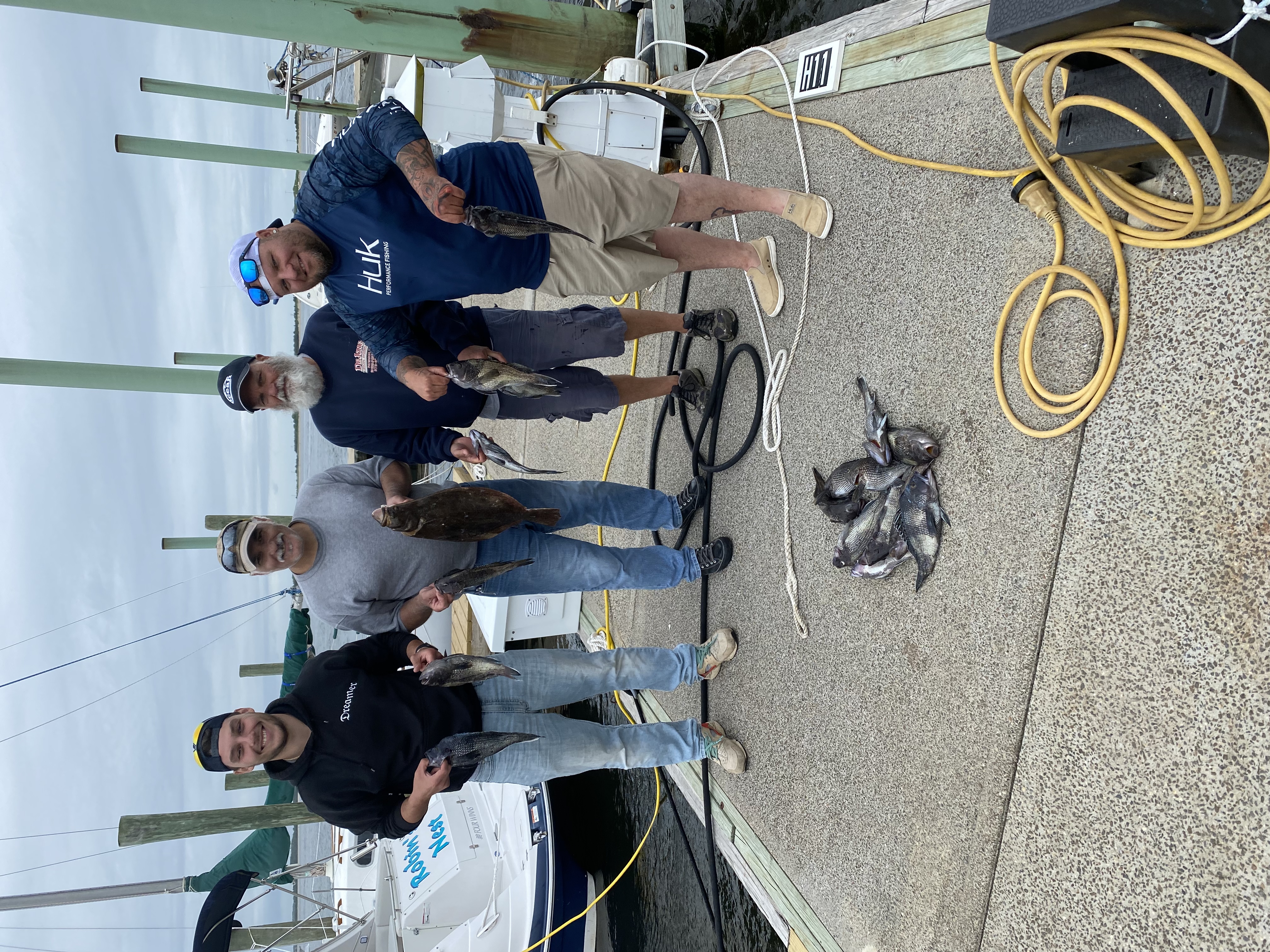 Early start got is to the sea bass grounds pretty quick in front of steadily building wind.Fish were more sluggish than usual.I'm guessing maybe 120 to150 fish came to the boat to produce 21 keepers sea bass 2 bluefish for shark bait and a dandy fluke of about 4-5 pounds.Great guests and looking forward to their return!